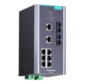 Switch công nghiệp Moxa PT-510 Series thiết kế chuyên dụng cho trạm biến áp, đáp ứng tiêu chuẩn môi trường điện lực, hỗ trợ dự phòng vòng (Turbo Ring).